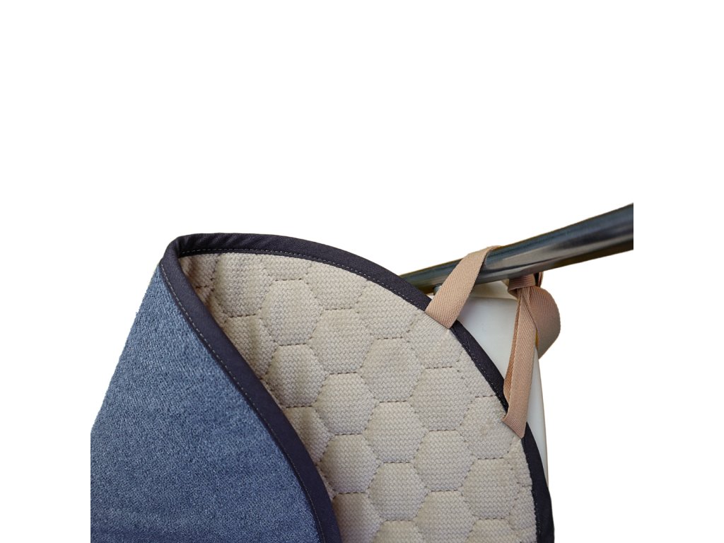 Zajišťuje stabilitu bez posouvání. Vybrané varianty mají praktické úvazky pro pevné uchycení k židli nebo vozíku.